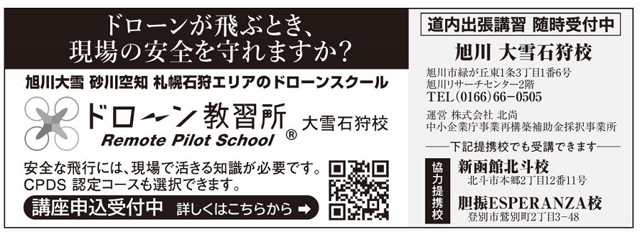 4月26日の北海道建設新聞 1面で、ドローン教習所大雪石狩校についてご紹介頂きました。